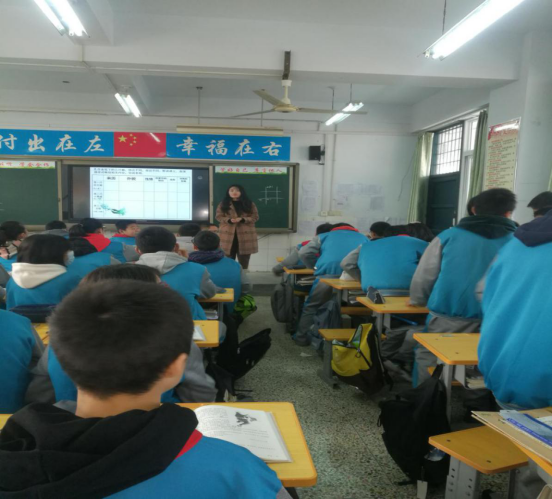 会后,听取我校音乐专业实习生白子蒙上的高二欣赏课、歌唱课,历史专业实习生上的历史课,以及中文专业实习生上的语文课,整体来看我校实习生熟悉上课流程、教案翔实,板书工整,教学互动环节良好,教学效果优秀。