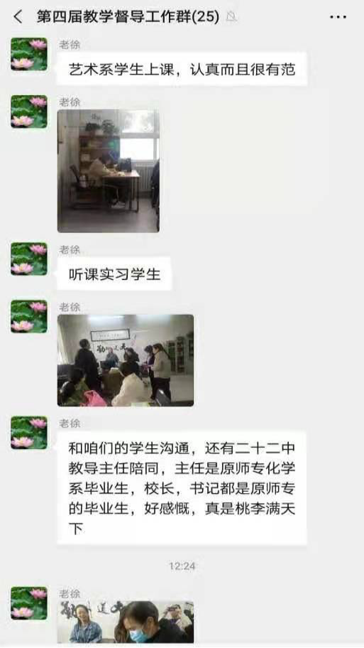 第六督导小组在徐素华组长的带领下走访了二十二中。通过观摩学生上课和与指导教师沟通等方式,进一步了解了我校学生的实习情况和实习效果。