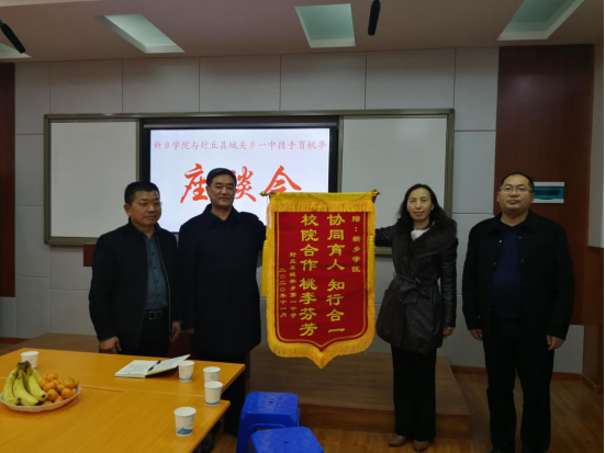 贾拥军校长和臧周印副校长为我校赠送了书写着“协同育人,知行合一,校院合作,桃李芬芳”的锦旗,表达了进一步加强校校合作、携手育人的殷切期望。